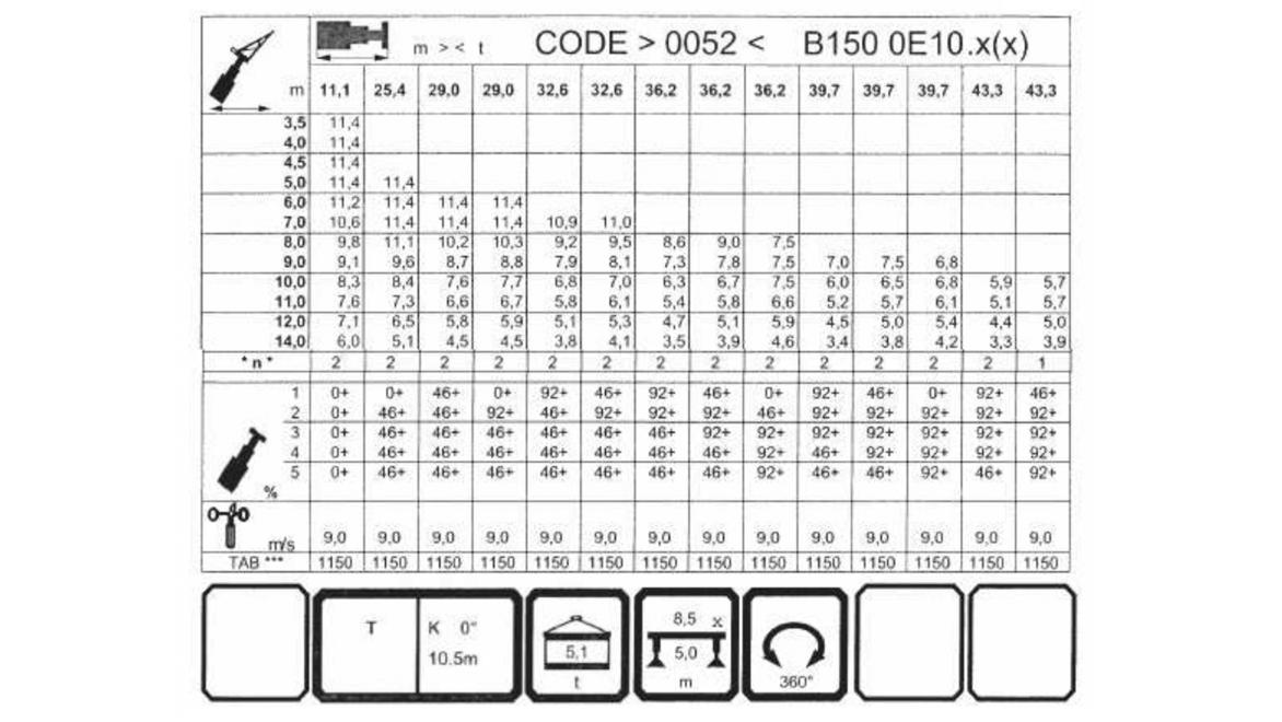 Maksymalna masa podnoszonego ładunku przy kącie β wynoszącym 65° nie może przekraczać: