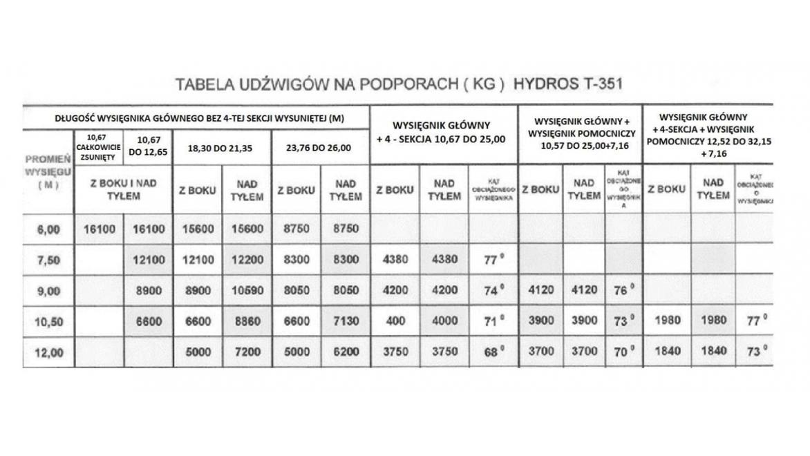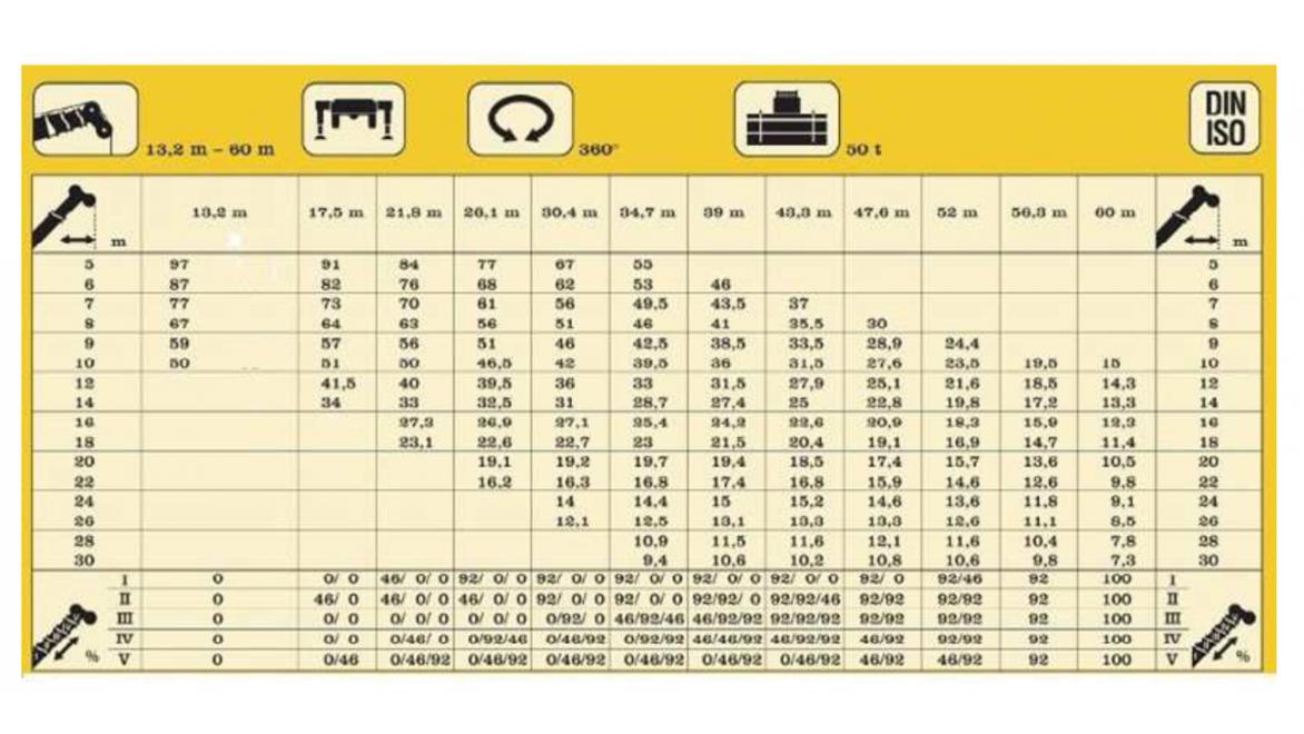 Maksymalna masa podnoszonego ładunku przy kącie β wynoszącym 50° nie może przekraczać: