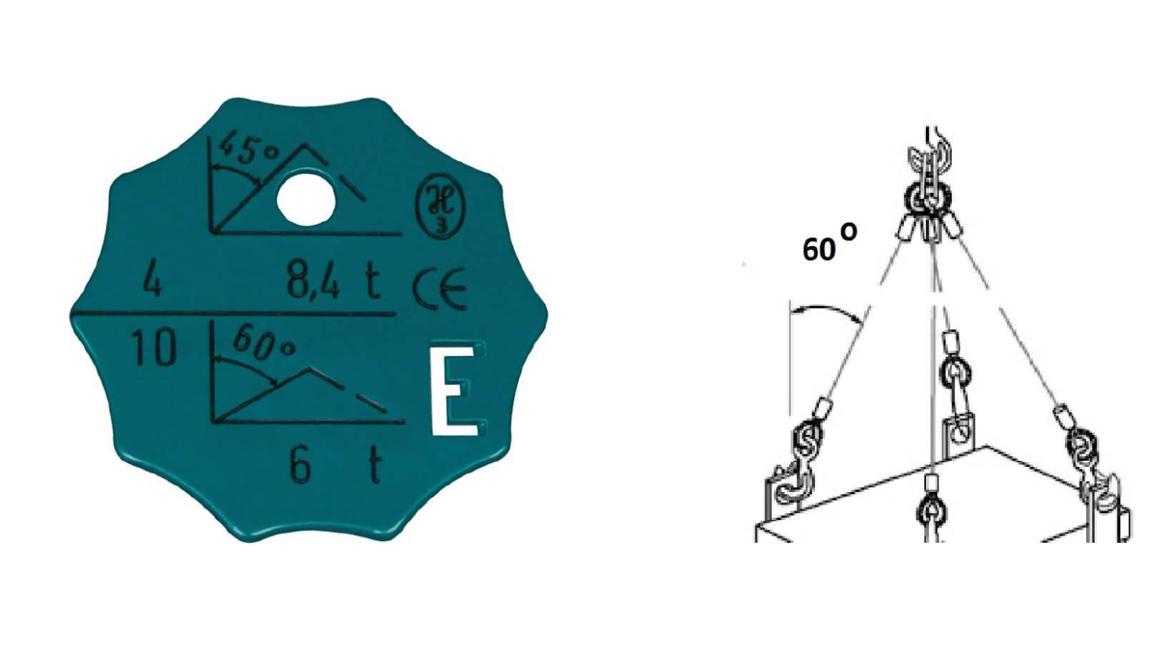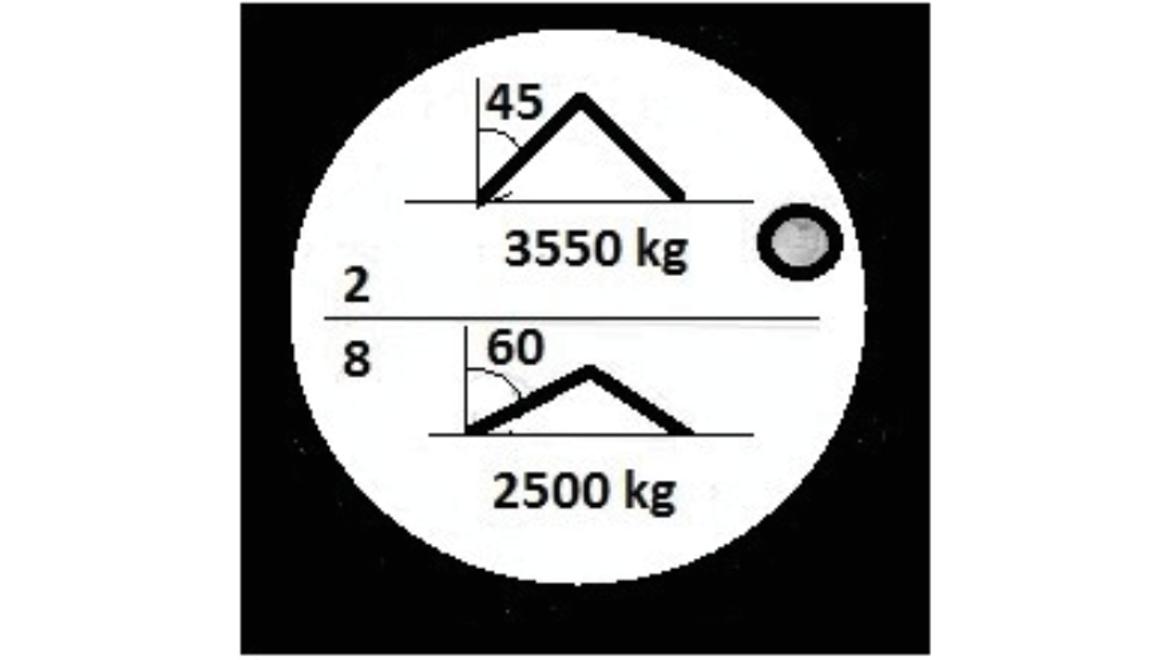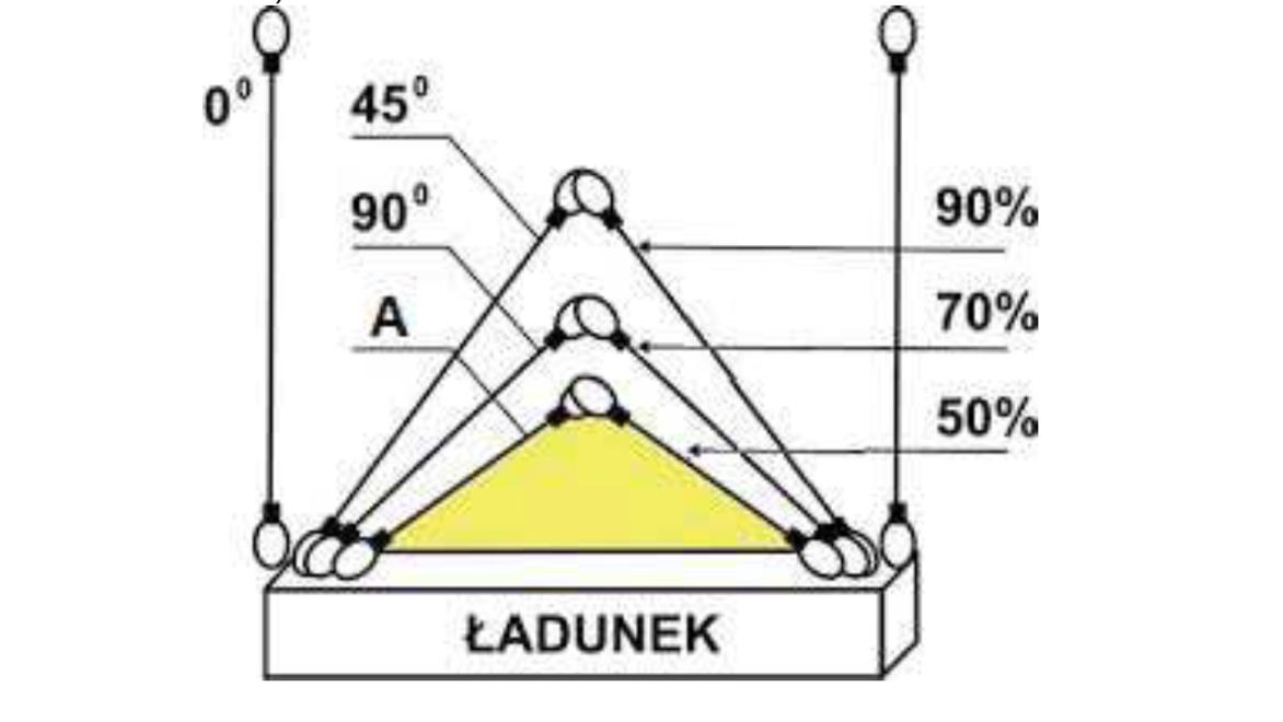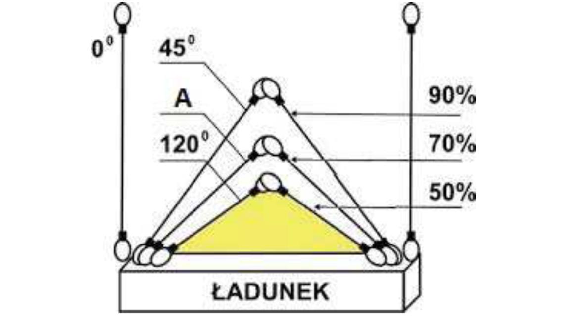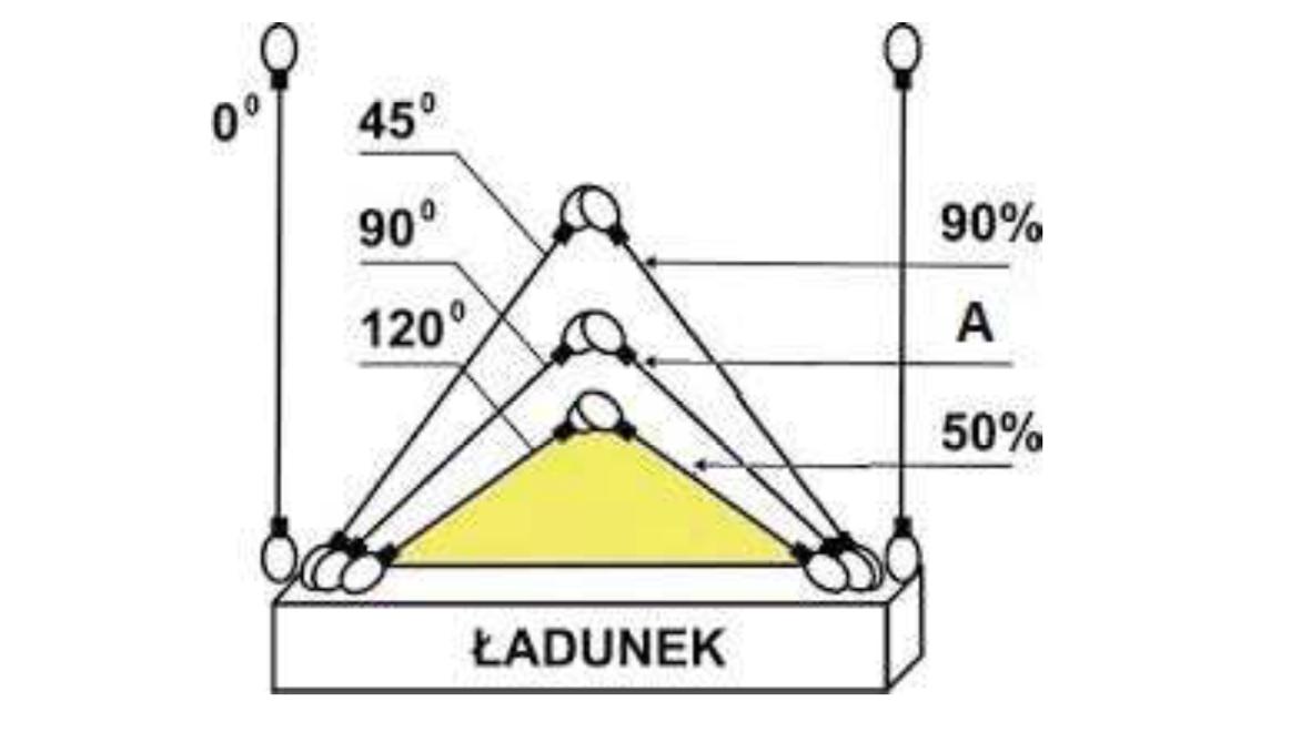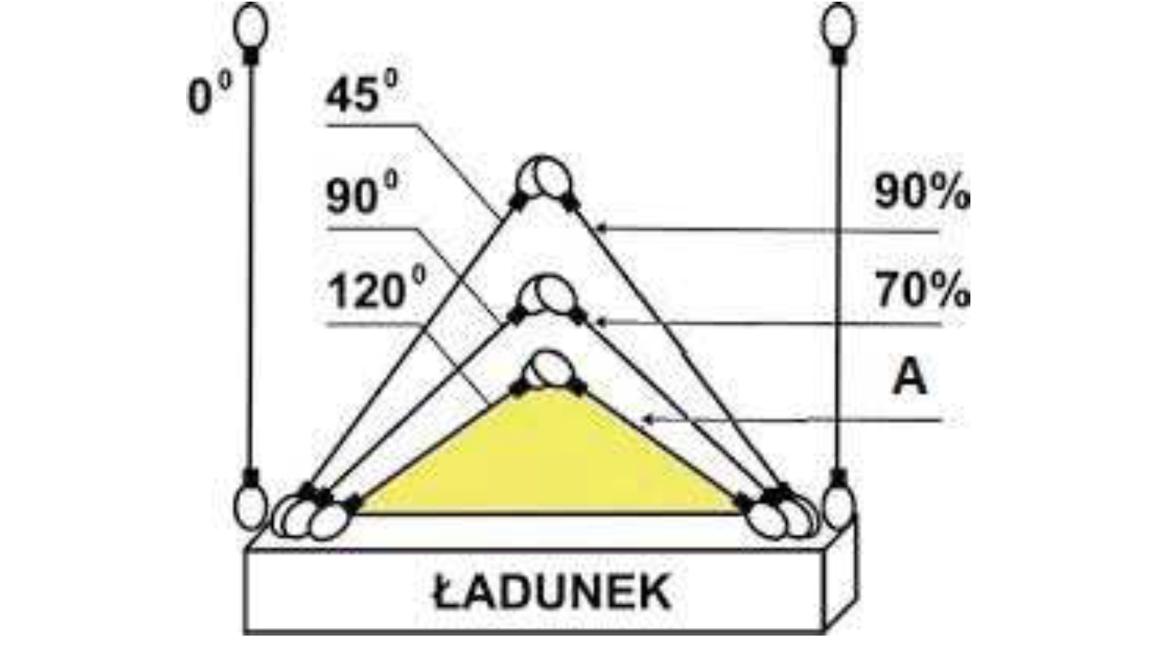 W oparciu o przedstawiony rysunek określ maksymalną masę ładunku jaką można podnieść przy pomocy zawiesia 4 cięgnowego: