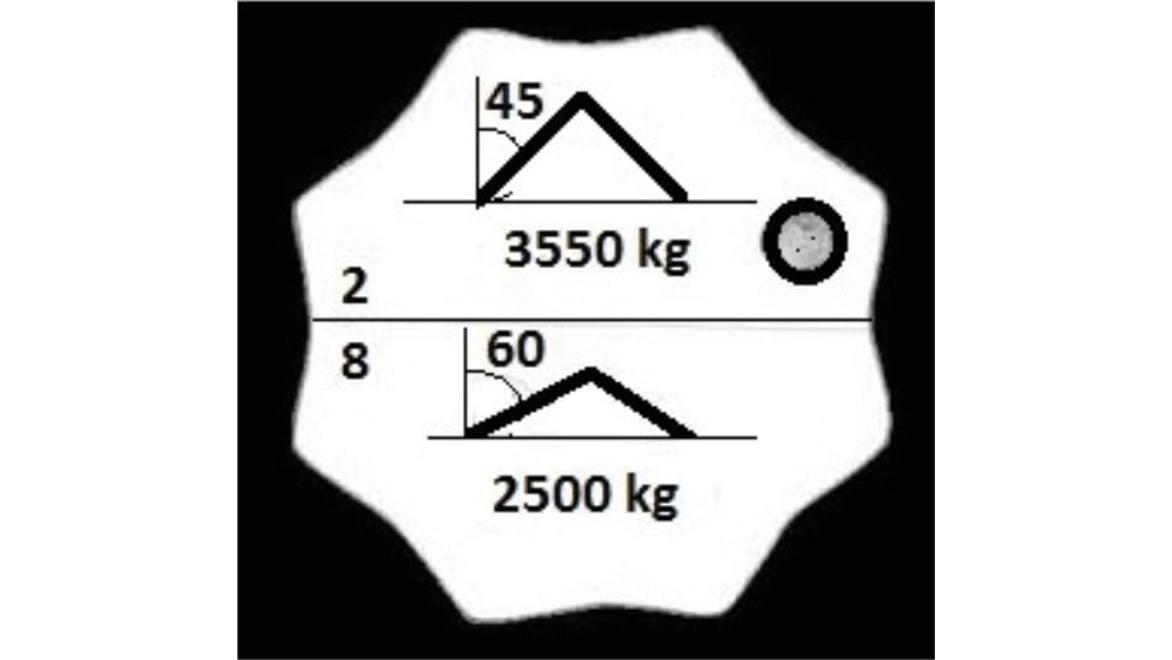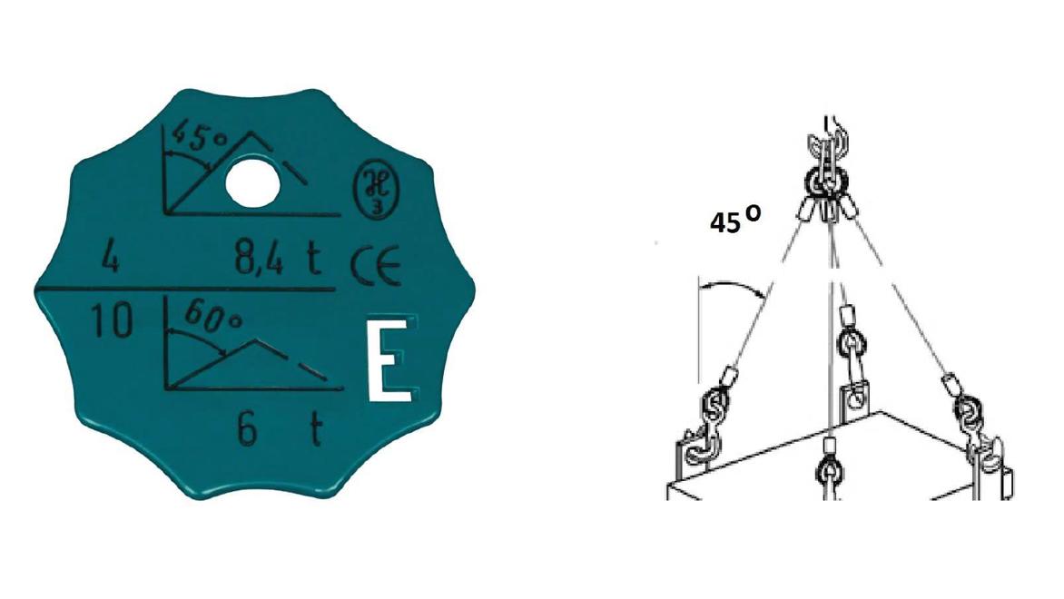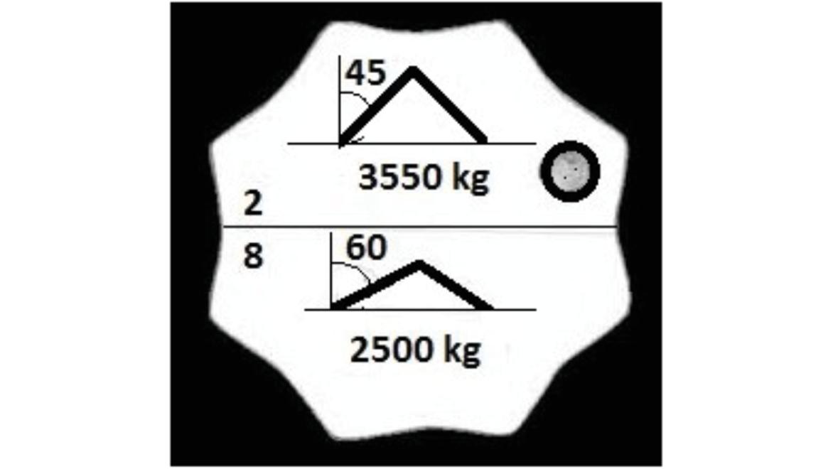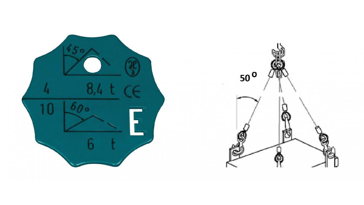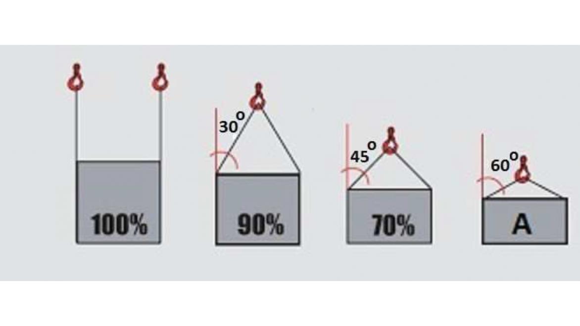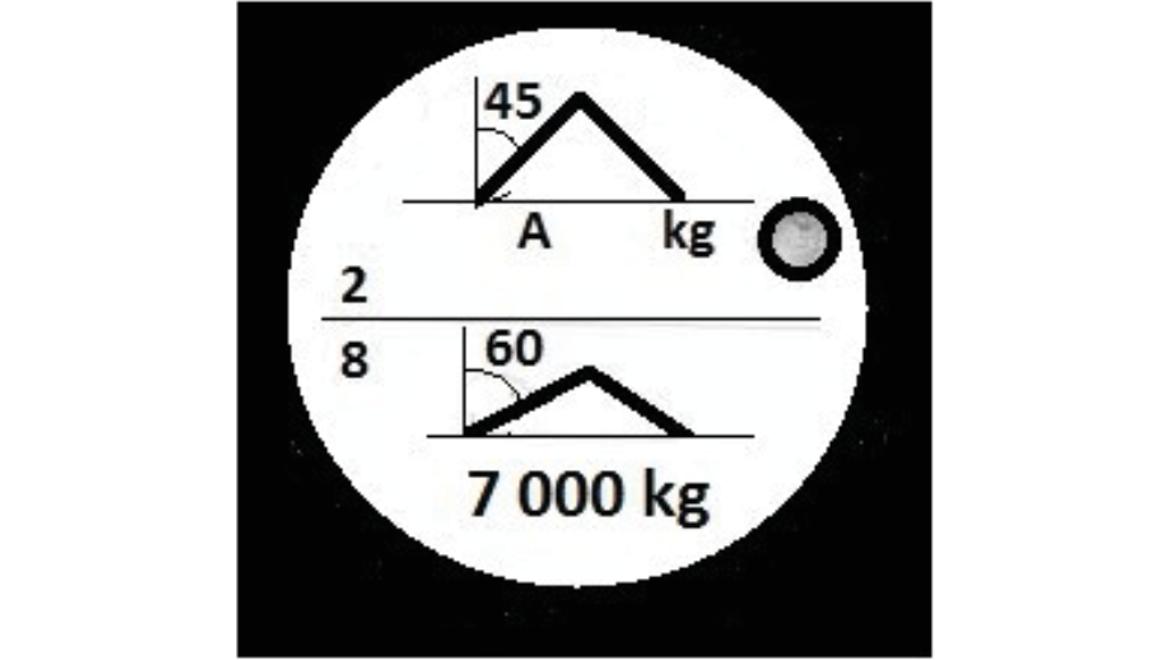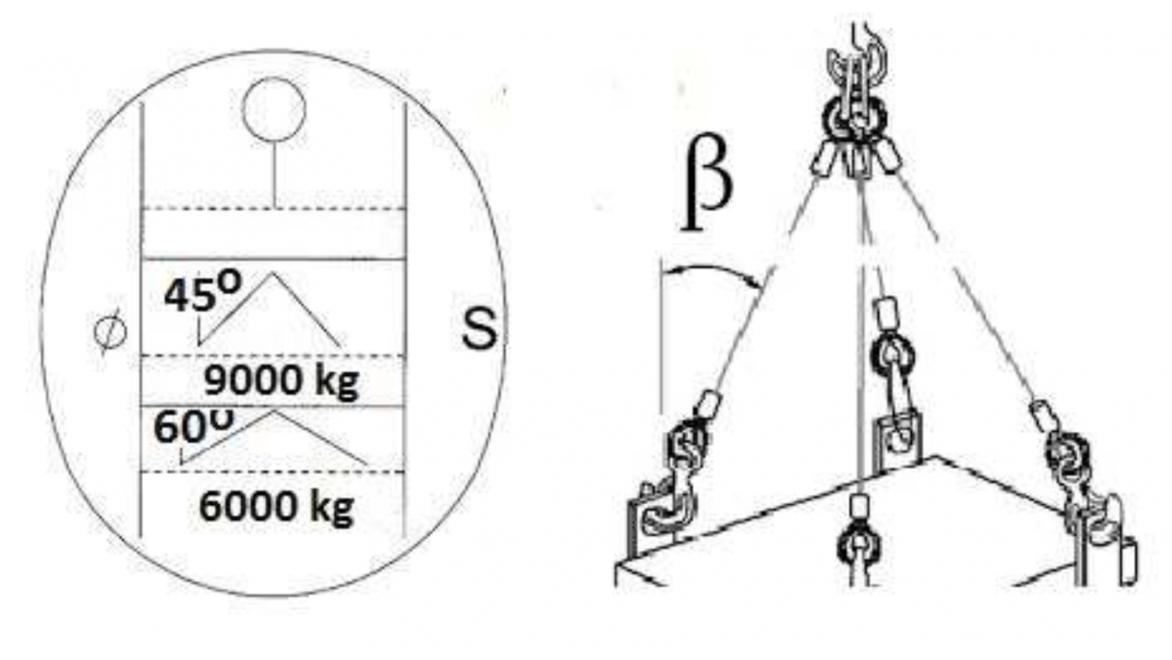 W oparciu o przedstawiony rysunek określ maksymalną masę ładunku jaką można podnieść przy pomocy zawiesia 4 cięgnowego: