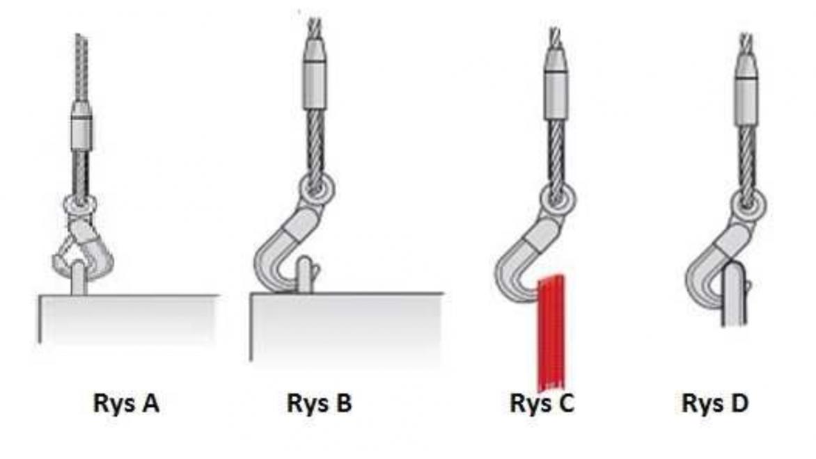 Wskaż, który ze sposobów zamocowania haka jest nieprawidłowy: