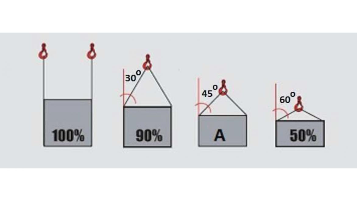W oparciu o przedstawiony rysunek wskaż wartość A dla zawiesia dwucięgnowego: